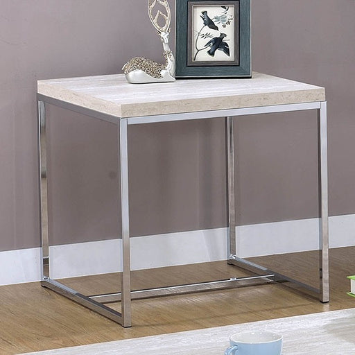 Perfect for any cozy space, this end table features a gorgeous faux marble top. Sturdy steel construction guarantees a lifetime of use.