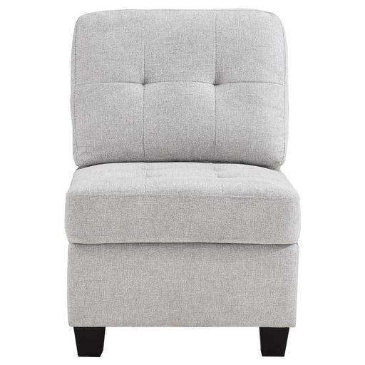View full detailsCustomize a sectional that suits your space with a modern armless corner chair. In soft beige upholstery, it's the perfect centerpiece for your Geo...