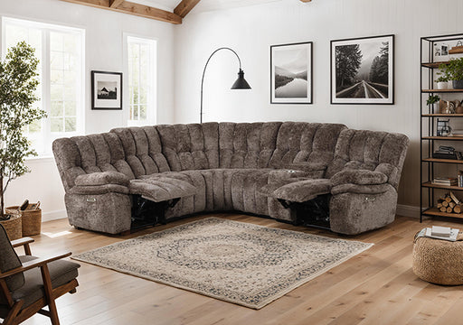 View full detailsEnjoy the comfort and casual style of this corner sectional with built-in recliners. Plush seats and arms offer comfort, while the mix of two mater...