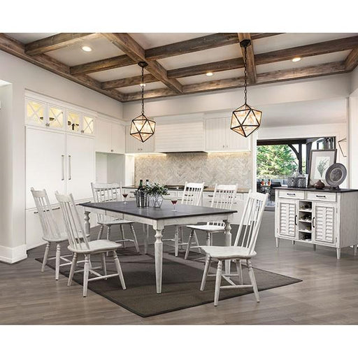 PAULINA Rustic Walnut Server, 56"W X 18"D X 36"H, 203.5lbs. A traditional design with hints of medieval flair, this beautiful dining set features r...